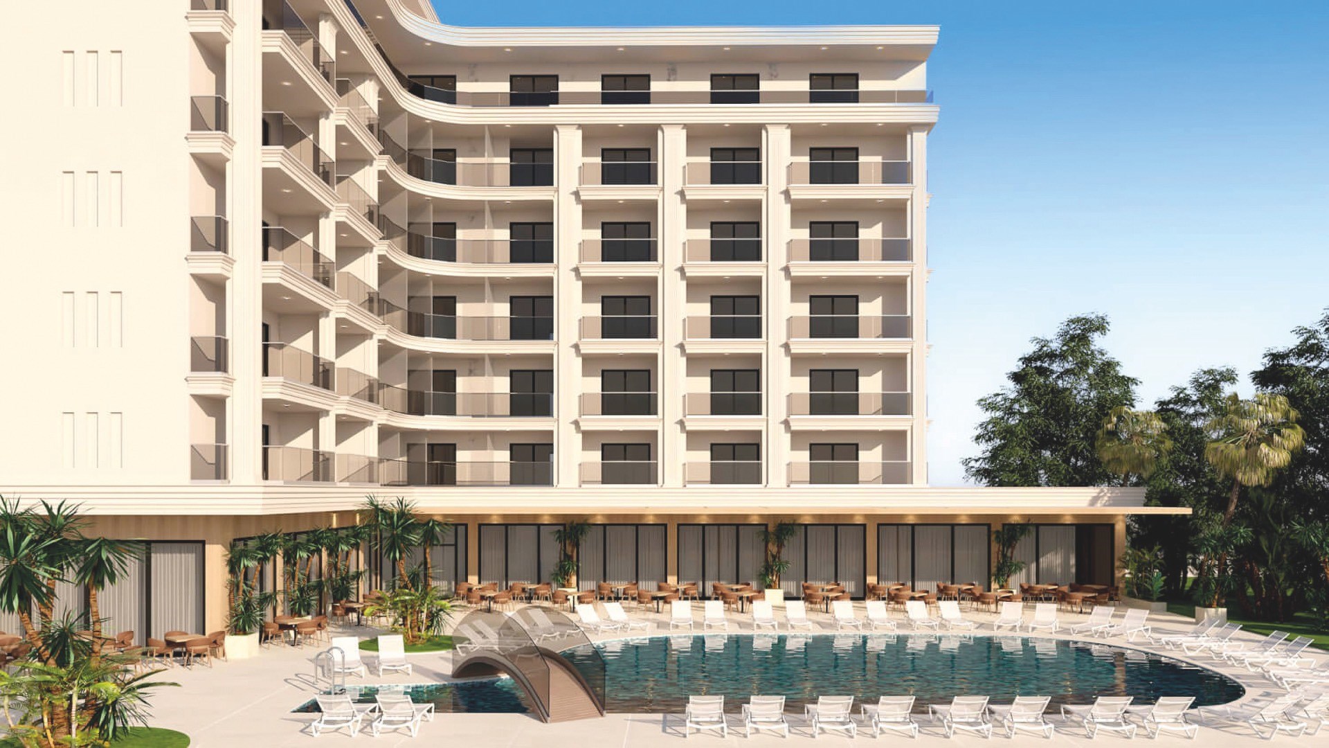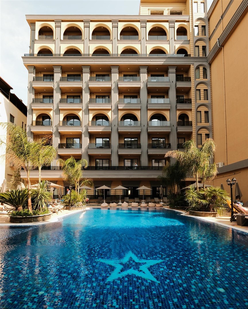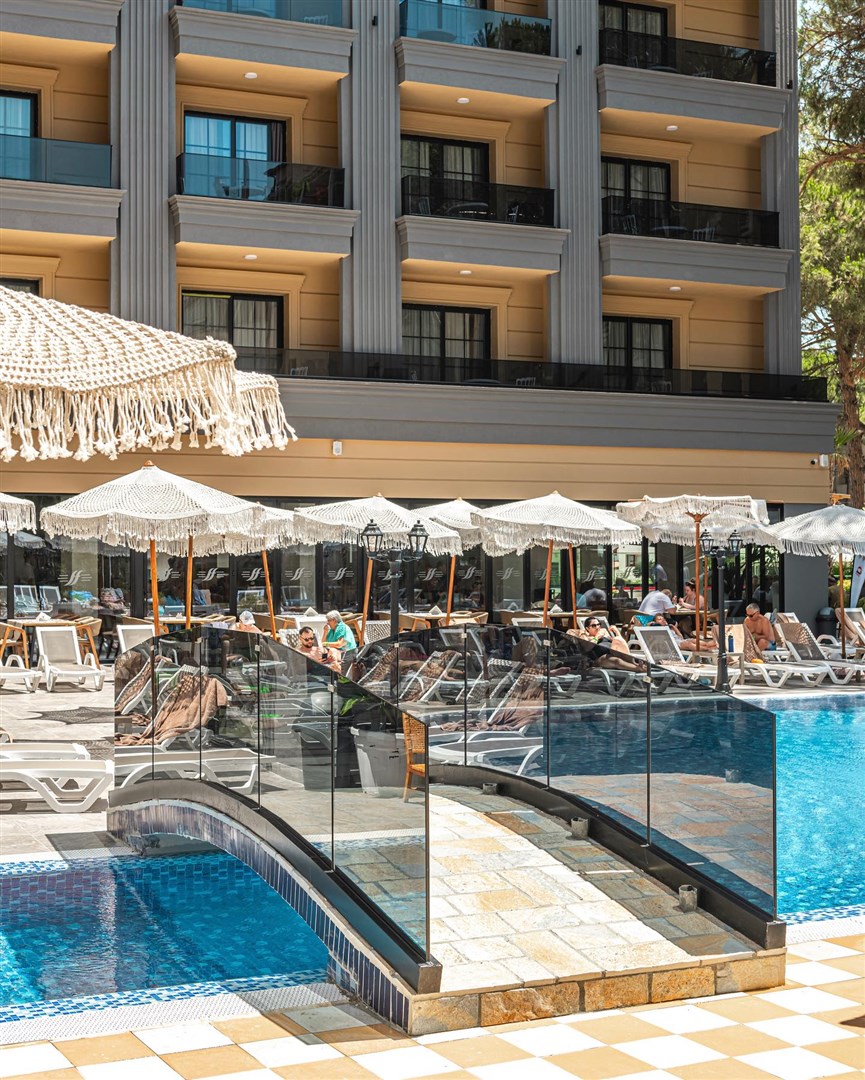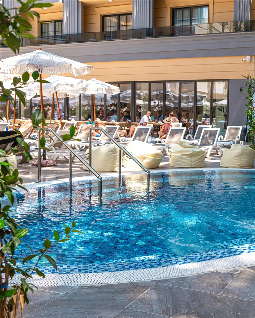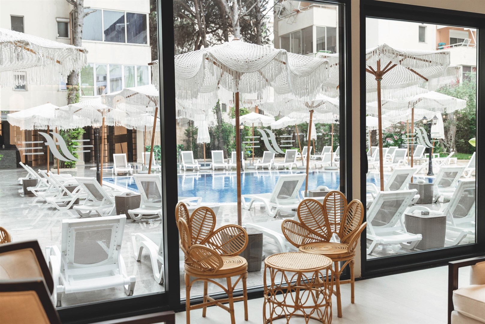 novopostavený hotel v roku 2023 • štýlová vstupná hala s recepciou a príjemným posedením • výťahy • hlavná reštaurácia • bar pri bazéne • vonkajší bazén atypického tvaru (plážové osušky za poplatok) • wifi • večer živá hudba s DJ-om