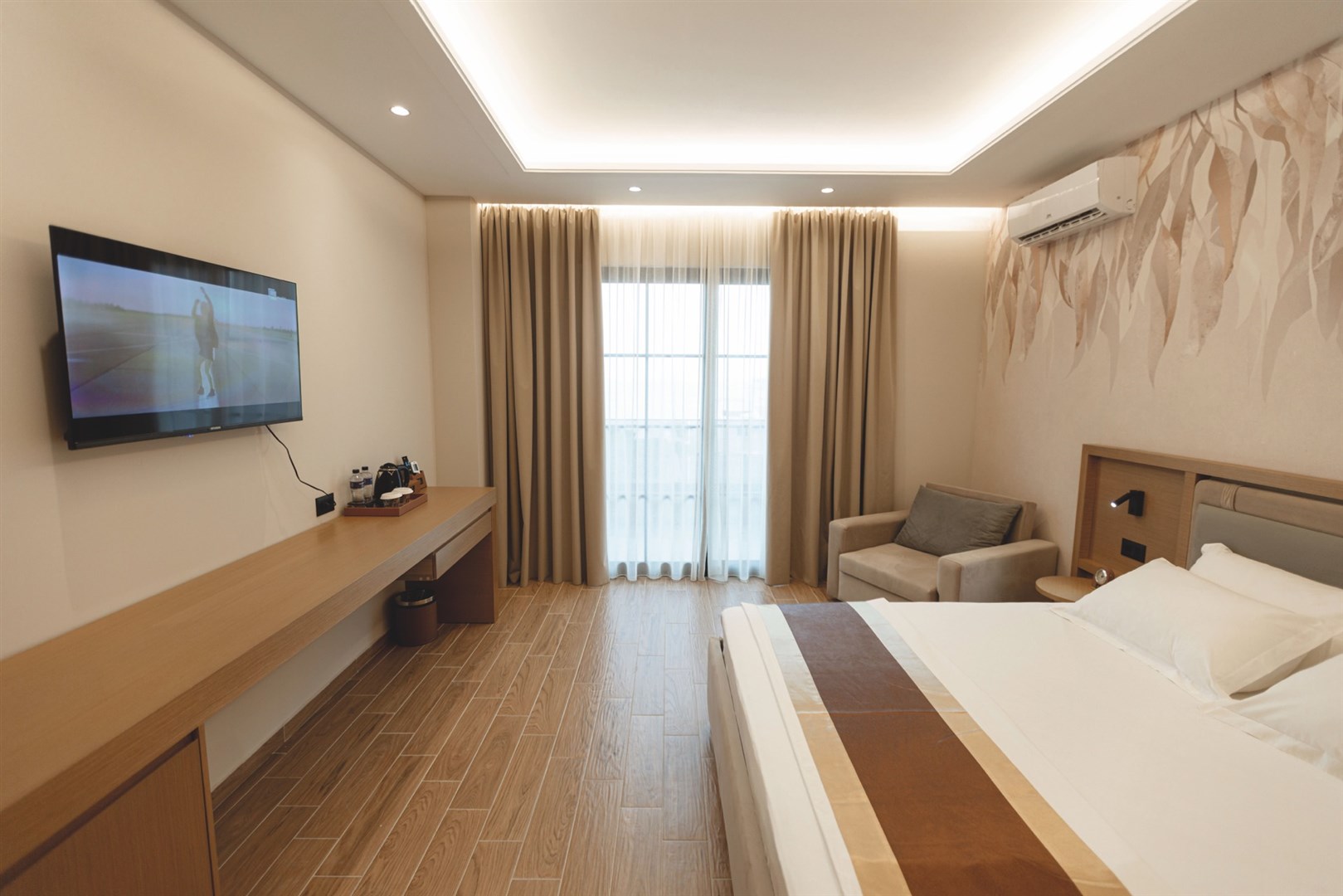 nové, moderne zariadené priestranné 2-lôžkové izby s možnosťou 1 prístelky (určené pre osoby od 18 rokov) • klimatizácia • minichladnička • TV • telefón • trezor • kúpeľňa so sprchou a WC • sušič na vlasy • wifi • balkón s posedením