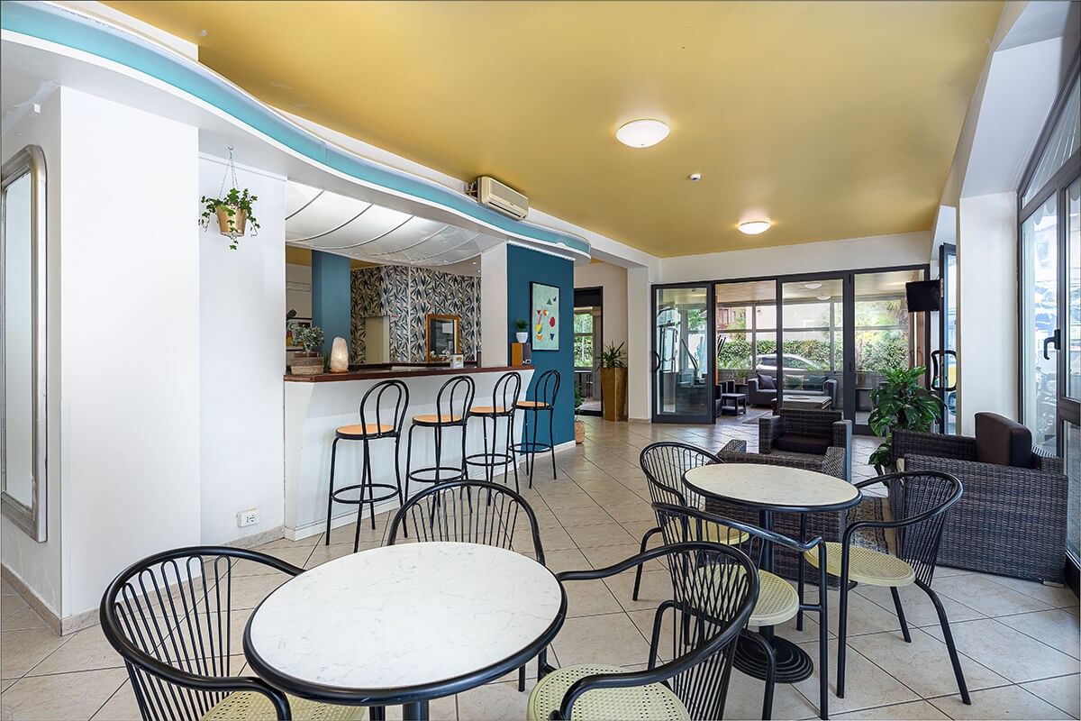 klimatizovaná vstupná hala s recepciou a posedením • bar • reštaurácia • výťah • wifi vo verejných priestoroch hotela • plážový servis na vyhradenej časti pláže (2 ležadlá a 1 slnečník na izbu zdarma) • parkovanie (za poplatok)