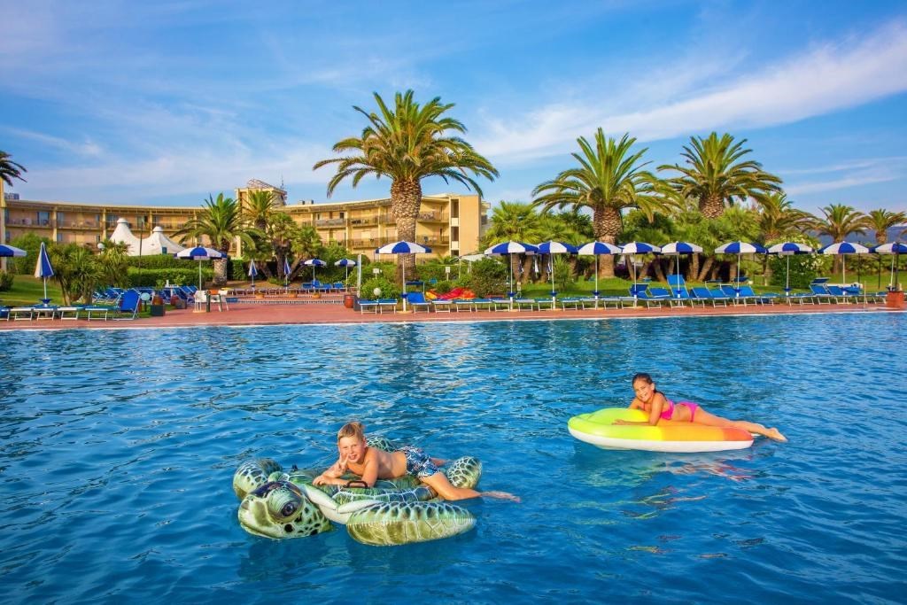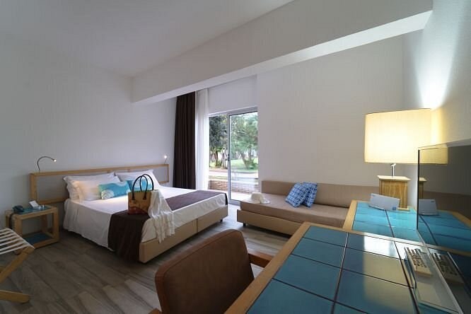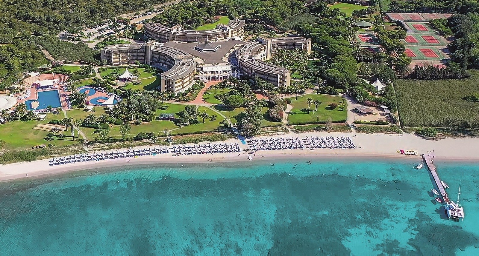 centrálna budova so službami a 3 ubytovacie bloky • vstupná hala s recepciou • hlavná reštaurácia • all inclusive bar • bar pri bazéne a bar na pláži (za poplatok) • bazén • 2 detské bazény • slnečníky a ležadlá pri bazénoch a na pláži (zdarma, plážové osušky za vratný depozit a poplatok) • 11 tenisových kurotv • stolný tenis • plážový volejbal • zóna pre jogu • bocca • posilňovňa • kaderníctvo • wifi • detský miniklub a ihrisko •denné a večerné hotelové animácie