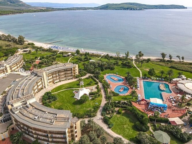 hotelový komplex v oblasti Porto Conte, cca 15 km od centra Alghera • 200 m od piesočnatej pláže s prímesou okruhliakov • cca 10 km od letiska v Alghero, 130 km od letiska v Olbii