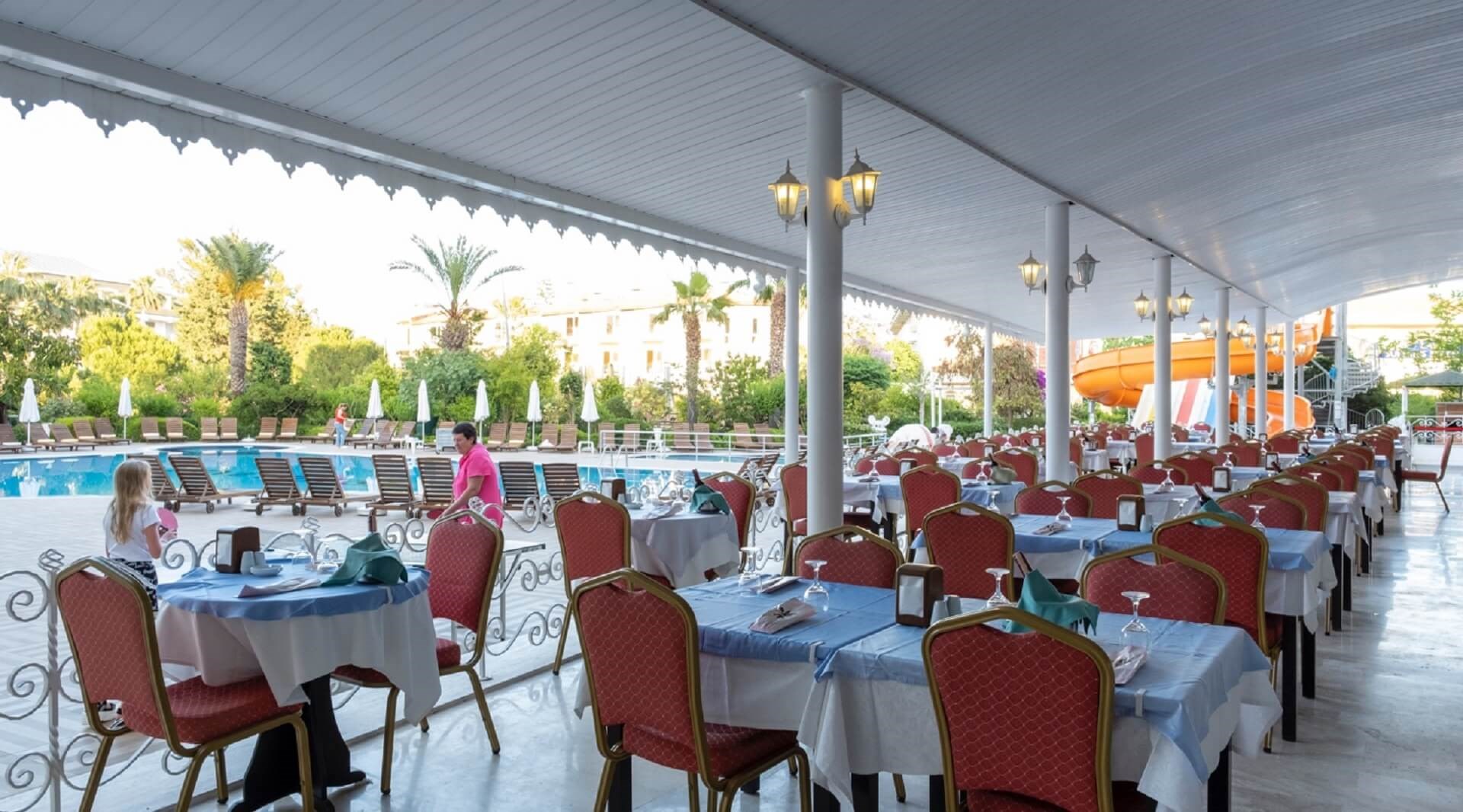vstupná hala s recepciou a posedením • hlavná reštaurácia aj s vonkajším posedením • lobby bar • pool bar • beach bar • snack bar v areáli hotela • snack bar v areáli hotela a na pláži • vonkajší bazén s vyhradenou časťou pre jacuzzi • bazén so šmykľavkami a toboganom • detský bazén • sauna (zdarma) • masáže, turecké kúpele a peeling (za poplatok) • fitness • aerobik • stolný tenis • šípky • plážový volejbal • boccia • vodná gymnastika • minigolf • minifutbal • miniklub (pre deti od 4 do 12 rokov) • ponuka rôznych vodných športov na pláži (za poplatok) • amfiteáter • hotelové animácie • večerný program a živá hudba • wifi v lobby a na pláži (zdarma)