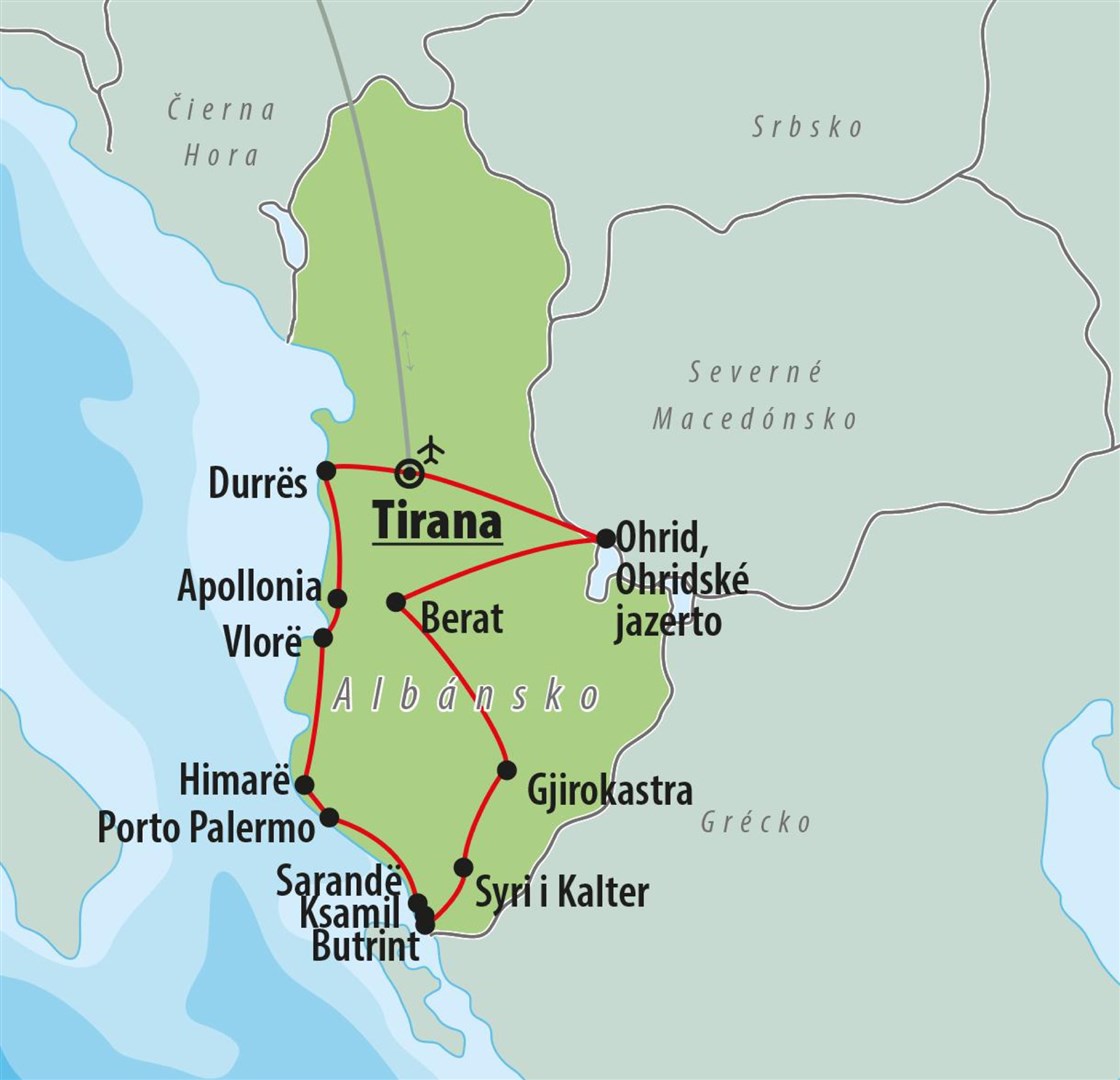1. deň » Odlet do Tirany, hlavného mesta Albánska, so stopami tureckej, gréckej aj sovietskej architektúry. Prehliadka centra mesta a jeho najzaujímavejších pamiatok a lokalít, medzi ktoré patria Skanderbegovo námestie s jeho sochou, mešita Et´hem Bey zo 17. storočia, či Pyramída – bývalé múzeum odkazu Envera Hodžu je dnes Medzinárodným kultúrnym centrom Pjetër Arbonori. Prechádzka mestskou štvrťou Blloku, ktorá bola kedysi vyhradená pre prominentných funkcionárov komunistickej strany a dnes je zelenou oázou plnou štýlových kaviarní, luxusných barov, trendových reštaurácií, ale aj butikov svetových značiek. Tradičný obed. Presun na pobrežie do mestečka Durrës, ktoré je nielen známym letoviskom, ale aj najvýznamnejším prístavom krajiny. Prehliadka najväčšieho amfiteátra na balkánskom polostrove. Ubytovanie a nocľah