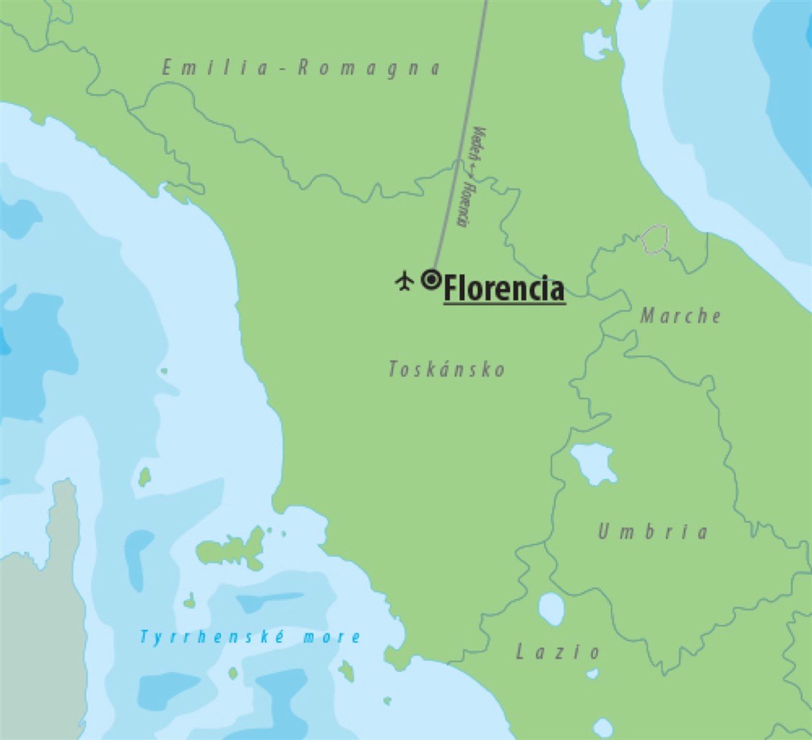 1. deň » Odlet z Viedne do Bologne. Transfer do Florencie - mesto označované za kráľovnú Toskánska a kolísku talianskej renesancie. Na jeho dnešnom vzhľade sa nepodpísala len preslávená rodina Mediciovcov, ale aj množstvo umelcov ako Botticelli, Michelangelo, či Leonardo da Vinci. Mesto založili v roku 59 pred n. l. Rimania, ktorí ho nazvali Colonia Florentia – Kvitnúca. Prechádzka mestom - bazilika Santa Maria Novella s mramorovou fasádou, ktorá bola prvou veľkou bazilikou Florencie. Pokračovanie cez časť San Lorenzo až k historickému centru Florencie a klenotu Toskánska - námestiu Duomo. Baptisterium San Giovanni, kde obyvatelia mesta najčastejšie pristupujú k sviatosti krstu a bol tu pokrstený aj florentský rodák, básnik Dante Alighieri. Giottova zvonica s 436 schodmi a prekrásnym výhľadom na centrum mesta. Chrám Santa Maria del Fiore, monumentálny dóm je nielen svätým centrom mesta, ale aj štvrtou najväčšou katedrálou sveta. Výstavbu začali v 13. storočí na mieste pôvodného kostola Santa Renata a dokončená bola v 19. storočí. Obloženie tvorí ružový, zelený a biely mramor. Návrat do hotela.
