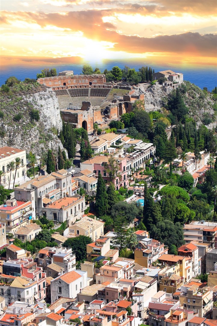 4. deň » Raňajky, výlet na Etnu (UNESCO), najvyššiu aktívnu sopku Európy. Fakultatívne možnosť vyviezť sa lanovkou a terénnymi autami až pod samotný kráter do oblasti lávových polí vo výške takmer 3000 metrov nad morom, kde podľa mytológie prebýval Vulcan, rímsky boh ohňa. Príchod do Taorminy, malebného mesta na brehu Iónskeho mora na úpätí vrchu Monte Tauro, ktoré je najstarším a najznámejším turistickým centrom na Sicílii. Prehliadka centra mesta, promenáda Corso Umberto I., katedrála San Nicolo, gotický palác Palazzo Corvaio, kláštor Badia Vecchia, mestská brána Porta Catania. Návšteva zachovalého starovekého gréckeho divadla s výhľadom na Etnu. Ubytovanie a nocľah.