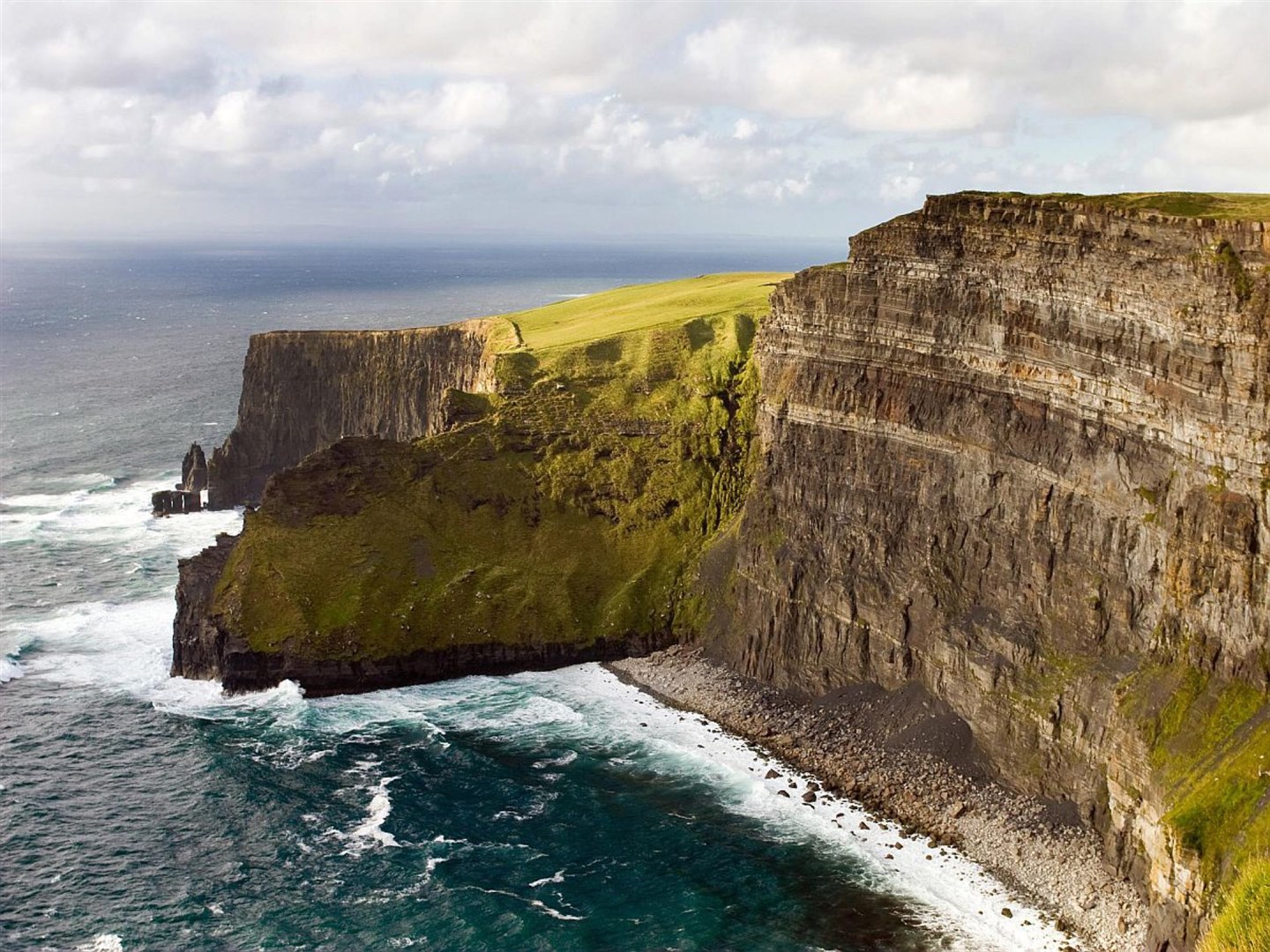 3. deň » Raňajky, transfer k Moherským útesom (Cliffs of Moher), ktoré ponúkajú jedinečný výhľad na Atlantický oceán a ostrov Aran. Útesy dosahujú výšku až 214 metrov a sú jedným z najkrajších prírodných divov Írska a zároveň ideálnym miestom na fotografovanie a prechádzky. Po návšteve útesov zástavka v dedinke Doolin, známej pre svoju typickú írsku atmosféru a tradičnú hudbu. Je to ideálne miesto na krátky odpočinok, obed a nákupy v miestnych obchodíkoch. Návrat do Dublinu cez región Burren. Známa „mesačná krajina“ s národným parkom, vápencovými skalami a starobylými kamennými hrobkami z doby kamennej. Vo večerných hodinách návrat do hotela a nocľah.