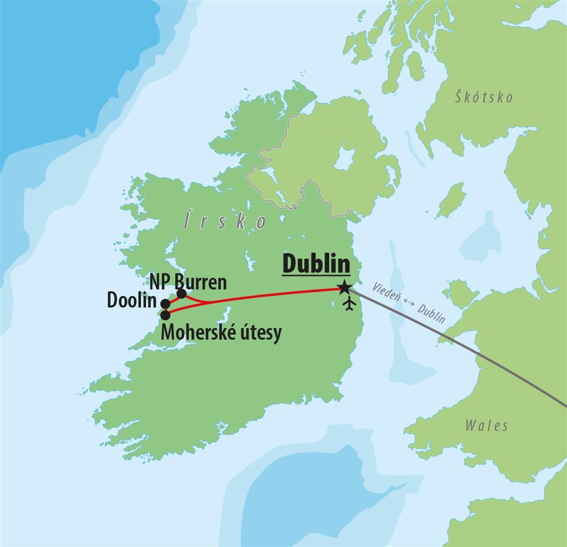 1. deň » Prílet do Dublinu a v popoludňajších hodinách prehliadka hlavného a najväčšieho írskeho mesta, ktoré je plné vikingskej a keltskej histórie. Začiatok prehliadky pri Leinster House, budova postavená v 18. storočí ako sídlo vojvodu z Leinsteru sa neskôr stala oficiálnym sídlom írskeho parlamentu. Pokračovanie k Dublin City Hall, radnici, ktorá je nielen historickým, ale aj politickým centrom mesta, a kde sa konali mnohé významné udalosti. Po prehliadke mesta v podvečerných hodinách presun do štvrte Temple Bar, ktorá je známym centrom dublinskej zábavy plnej barov, reštaurácií, írskeho folklóru a hudby. Po dni plnom zážitkov ubytovanie a nocľah.