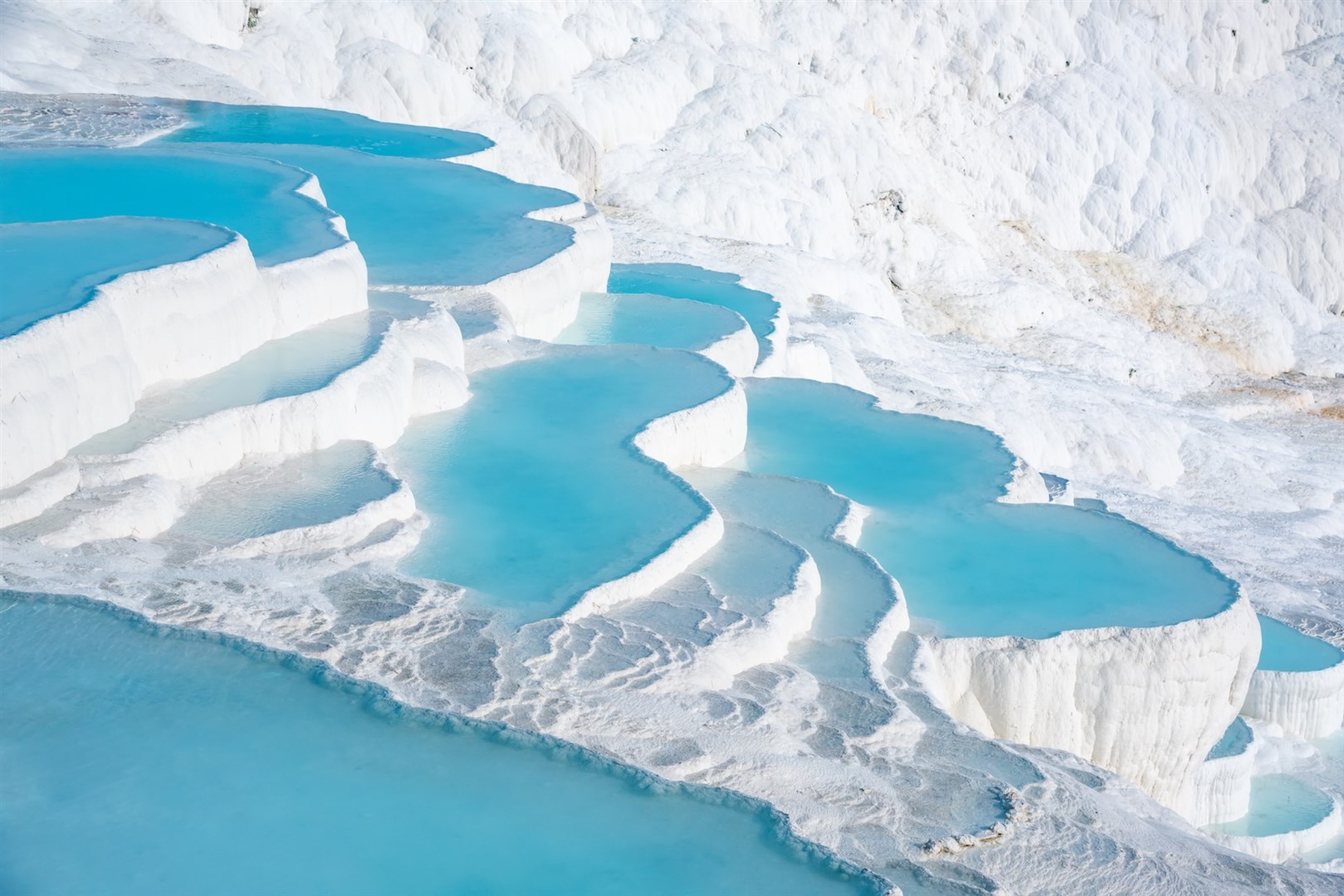 6. deň » raňajky, preskúmanie starovekého Hierapolisu a travertínov Pamukkale (Bavlníkový hrad), prírodného zázraku oslnivej bielosti, kde horúce pramene bohaté na vápenaté soli vytvorili terasy na útesoch. Obdivovanie vodopádu, impozantných stalaktitov a prírodných bazénov. Možnosť plávania v Kleopatrinom bazéne. Pokračovanie do Antalye. Večera a prenocovanie v hoteli v Antalyi.